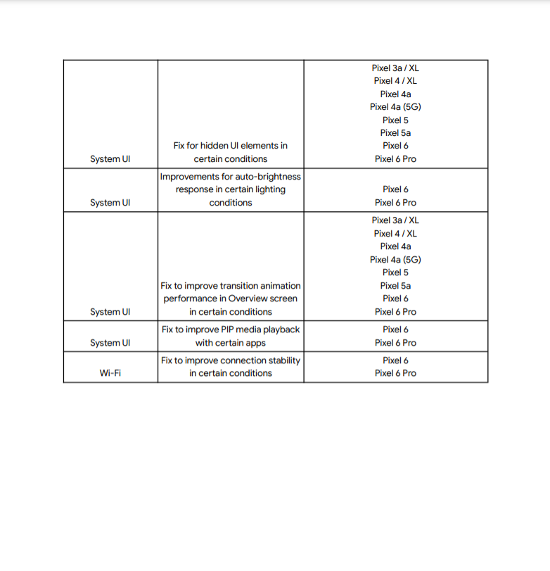 | Android 12 | All Pixels (prior to Pixel 6) | Scrolling screenshot feature missing | Not Aware |